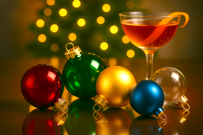 Capture the sparkle and reflection of these dazzling ornaments, luminous lights, and merry martini.
